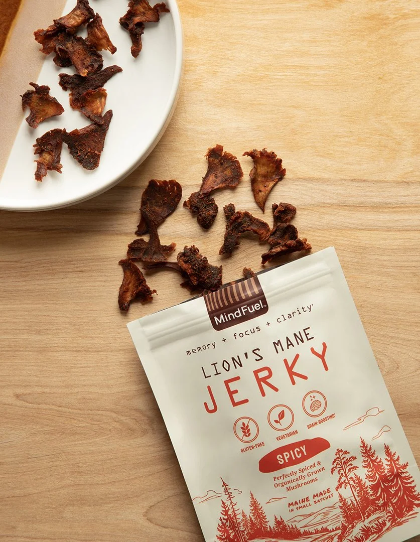 Home-grown in the heart of Maineat Timberwoods Farm, MindFuelwas inspired by one of nature’s most extraordinary gifts, the Lion’s Mane mushroom. With brain-boosting benefits and a natural meaty texture, it’s the perfect foundation for a clean, craveable snack that won’t slow you down. Torn by hand, each piece is seasoned and slow-dried to capture both the savory chew of jerky and the organic, plant-powered brilliance of mushrooms. So whether you’re scaling a mountain or chasing that next idea, MindFuel keeps your spirits lifted and your brain sharp.